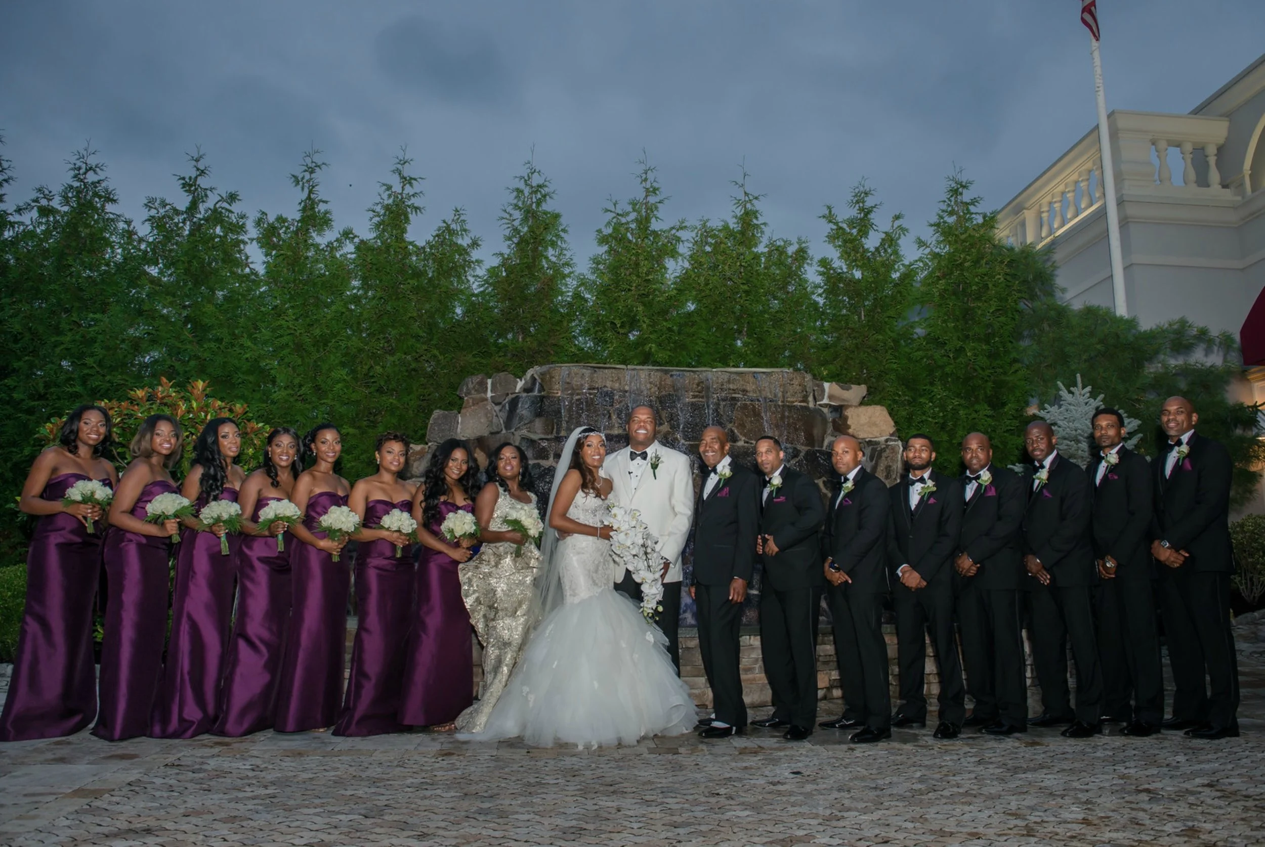Bride and groom with entire wedding party